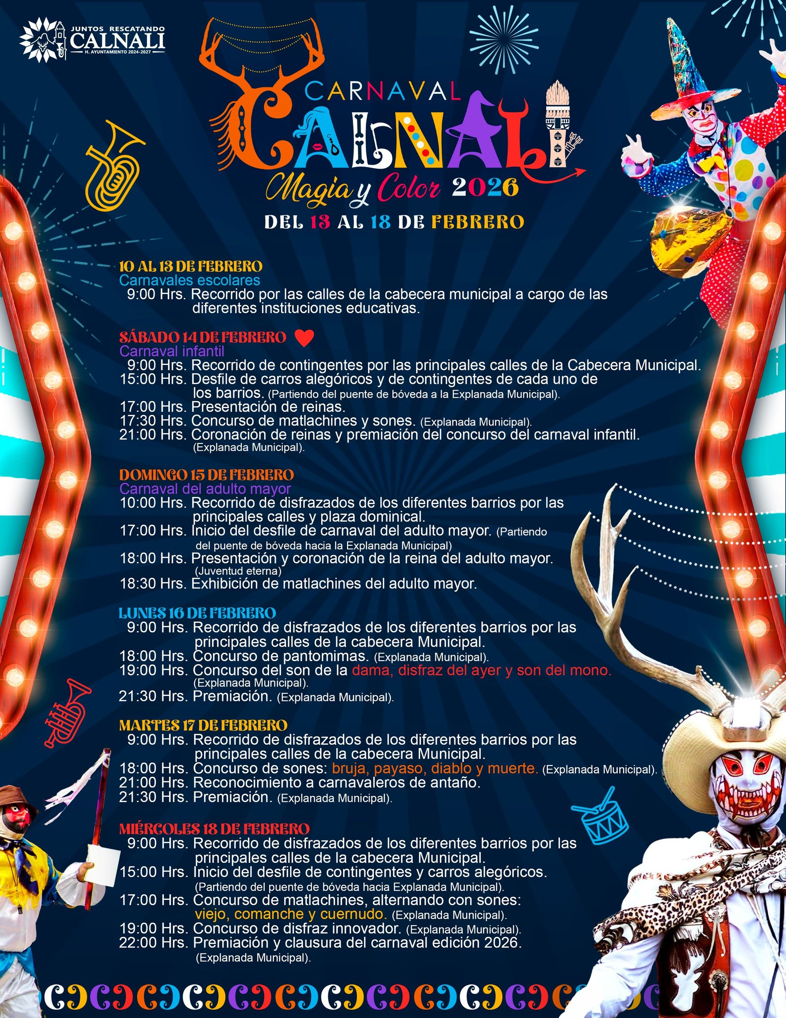 El programa del Carnaval Calnali 2026 ya está listo. Es un evento esperado en el calendario cultural del municipio de Calnali, Hidalgo, y ofrece una serie de actividades tradicionales que se extenderán del 13 al 18 de febrero. Este carnaval es parte de la historia y la tradición de la región y brinda una plataforma para la expresión comunitaria a través de la música, la danza y el arte.