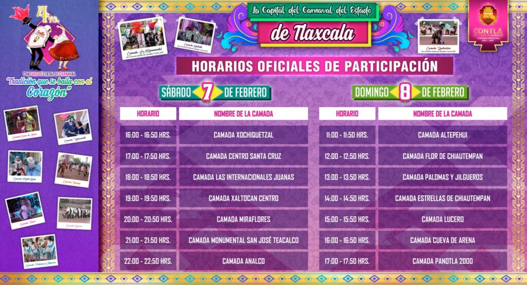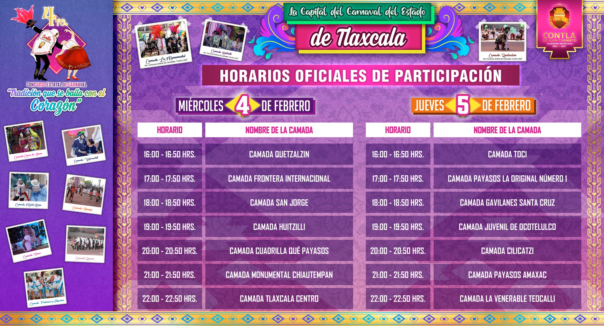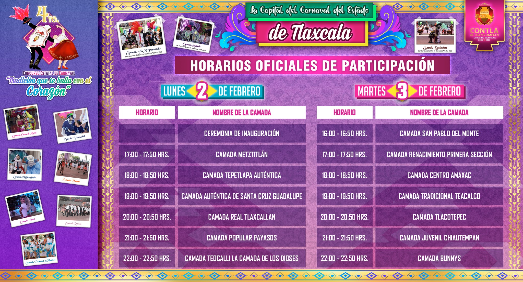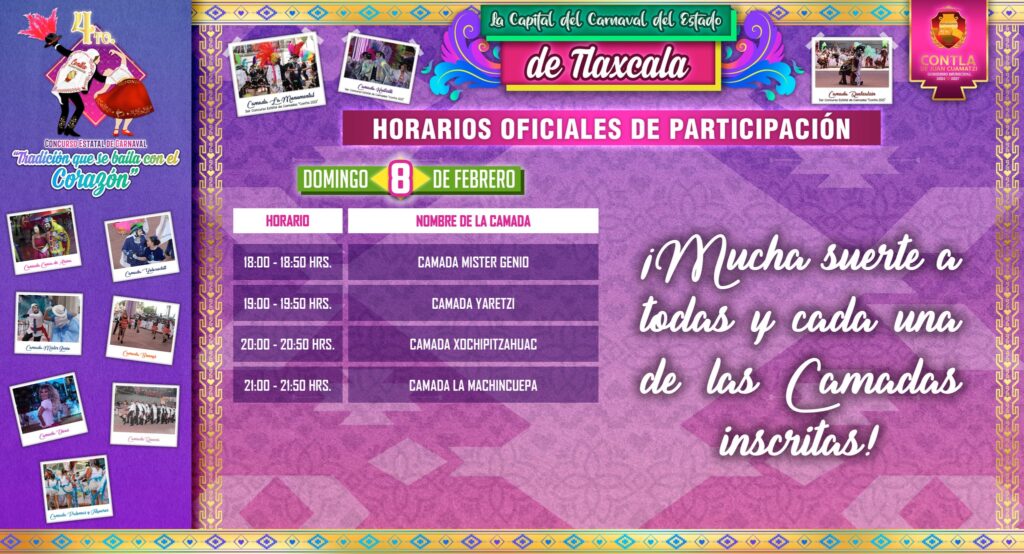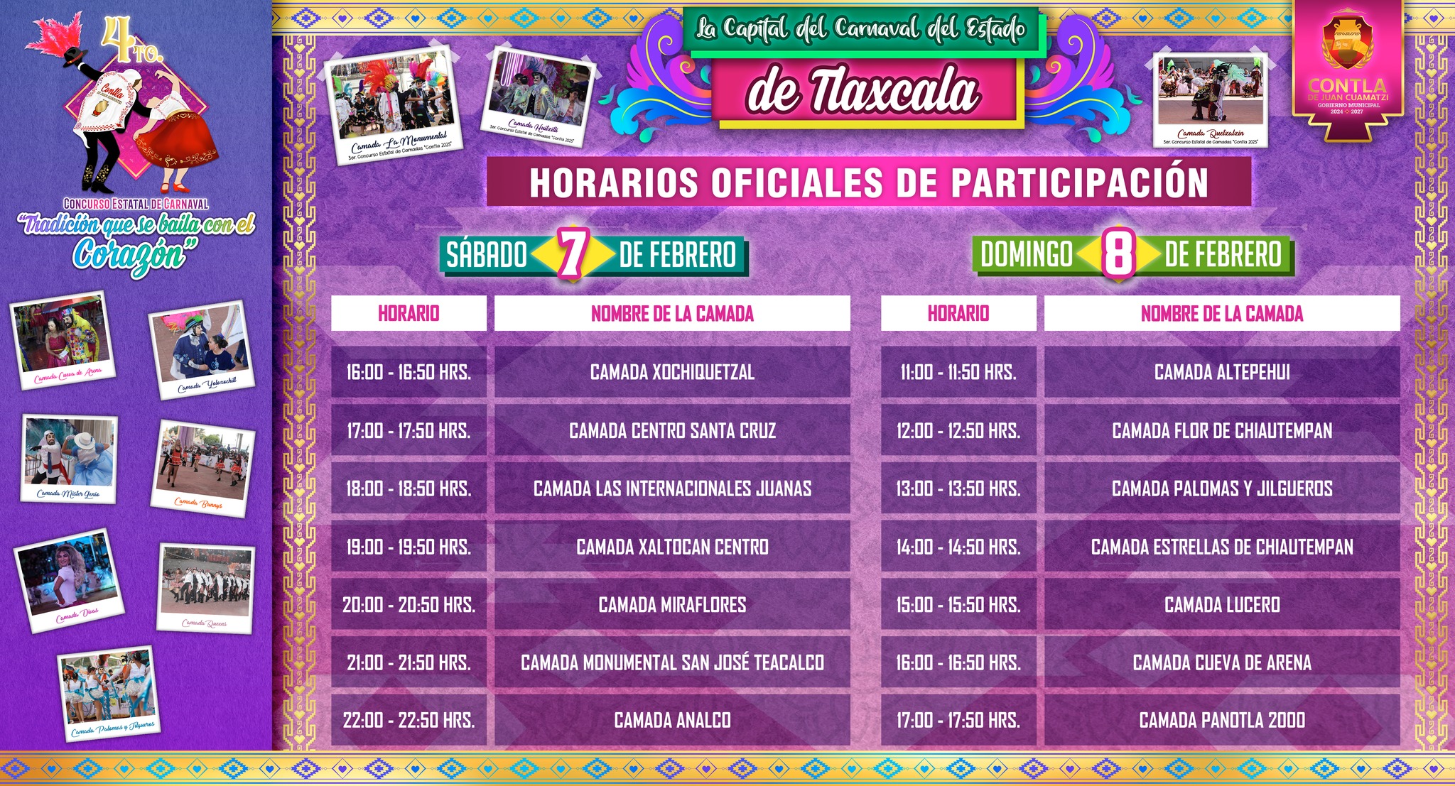 Para 2026 ya fueron publicados los horarios del Concurso Estatal de Camadas, uno de los eventos más esperados por los habitantes del municipio y por los visitantes que llegan desde distintos puntos de Tlaxcala. Aunque los cuadros horarios indican únicamente los turnos de participación, detrás de cada nombre hay un trabajo que involucra ensayos, arreglos, coordinación y una dedicación que se observa al momento de la presentación.