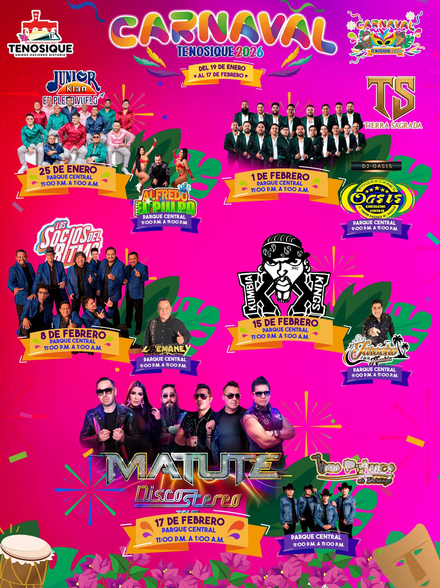 Cartelera artística del Carnaval Tenosique 2026