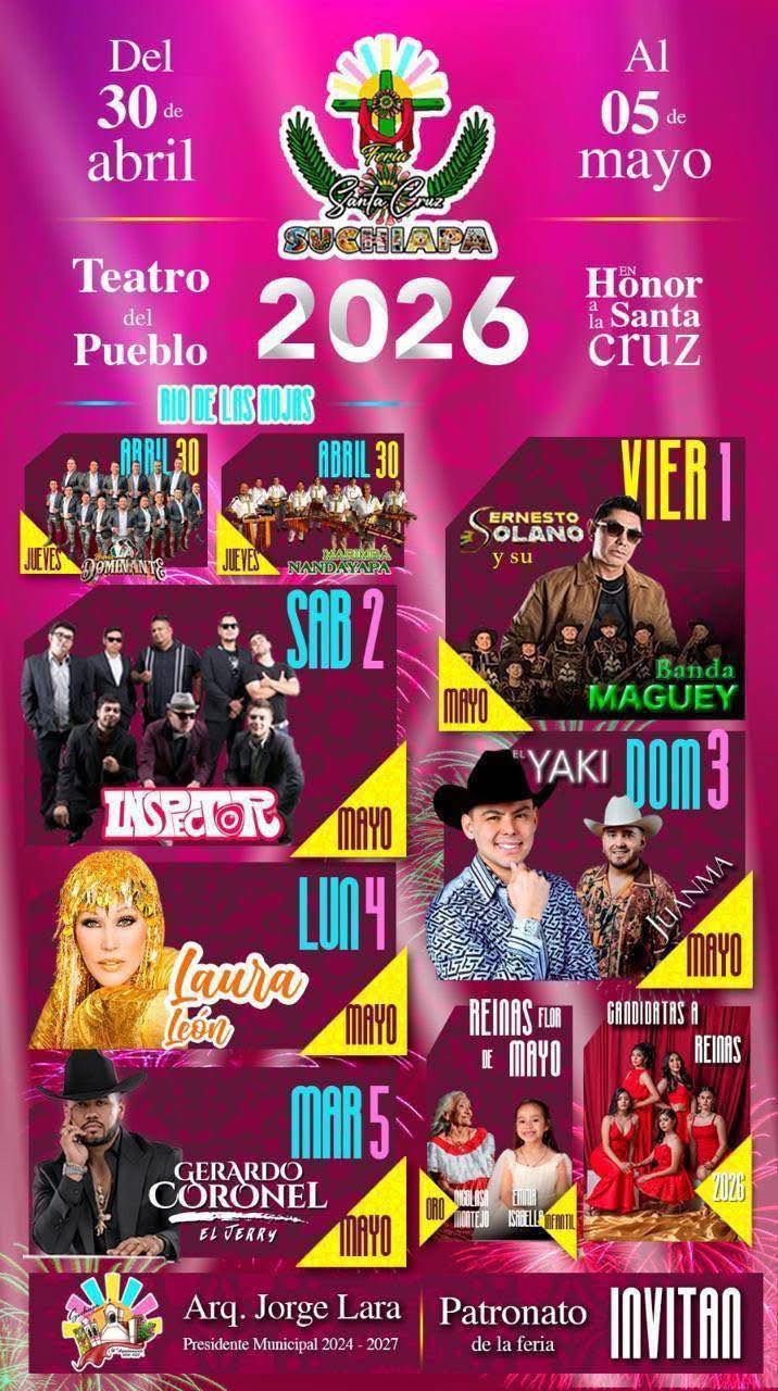 Cartelera artística Feria de la Santa Cruz Suchiapa 2026
