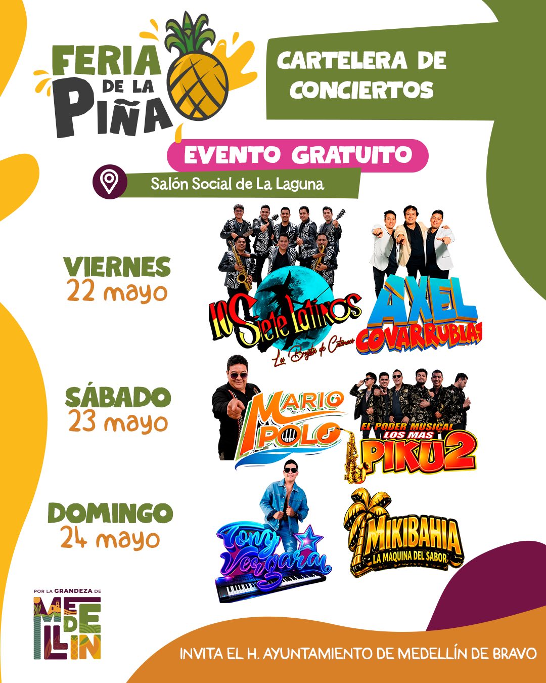 - Viernes 22 de mayo: Los Siete Latinos y Axel Covarrubias