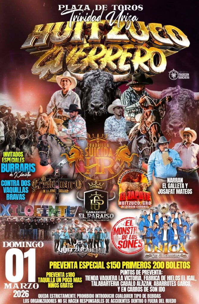 Feria Huitzuco 2026 se realizará del 27 de febrero al 6 de marzo, siendo el 28 el día más importante. En este día y durante toda la semana habrá actividades típicas de feria como los juegos mecánicos, charreadas, danzas populares y conciertos en el teatro del pueblo.