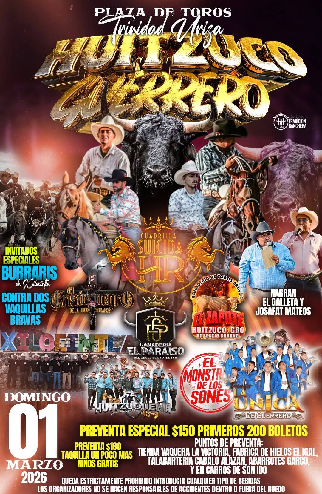La Expo Feria de Huitzuco ofrecerá un sinfín de actividades, sobre todo ganaderas y de fiesta brava, además de bailes populares con excelentes bandas locales y regionales.
