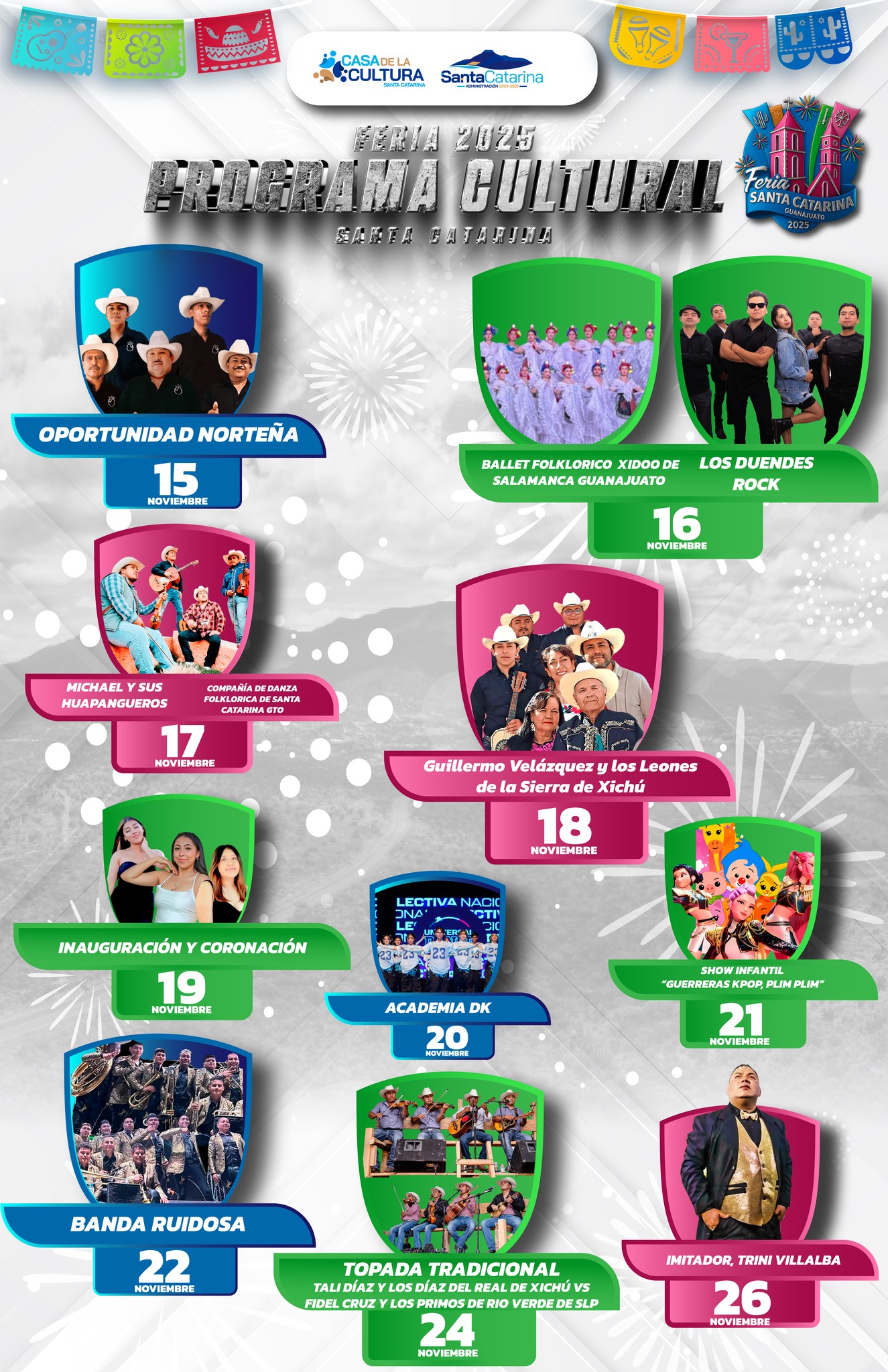 Del 19 al 27 de noviembre, el municipio de Santa Catarina, Guanajuato, celebrará su tradicional Feria Santa Catarina Guanajuato 2025. No te pierdas este gran evento de origen patronal y lleno de entretenimiento para toda las familias.
