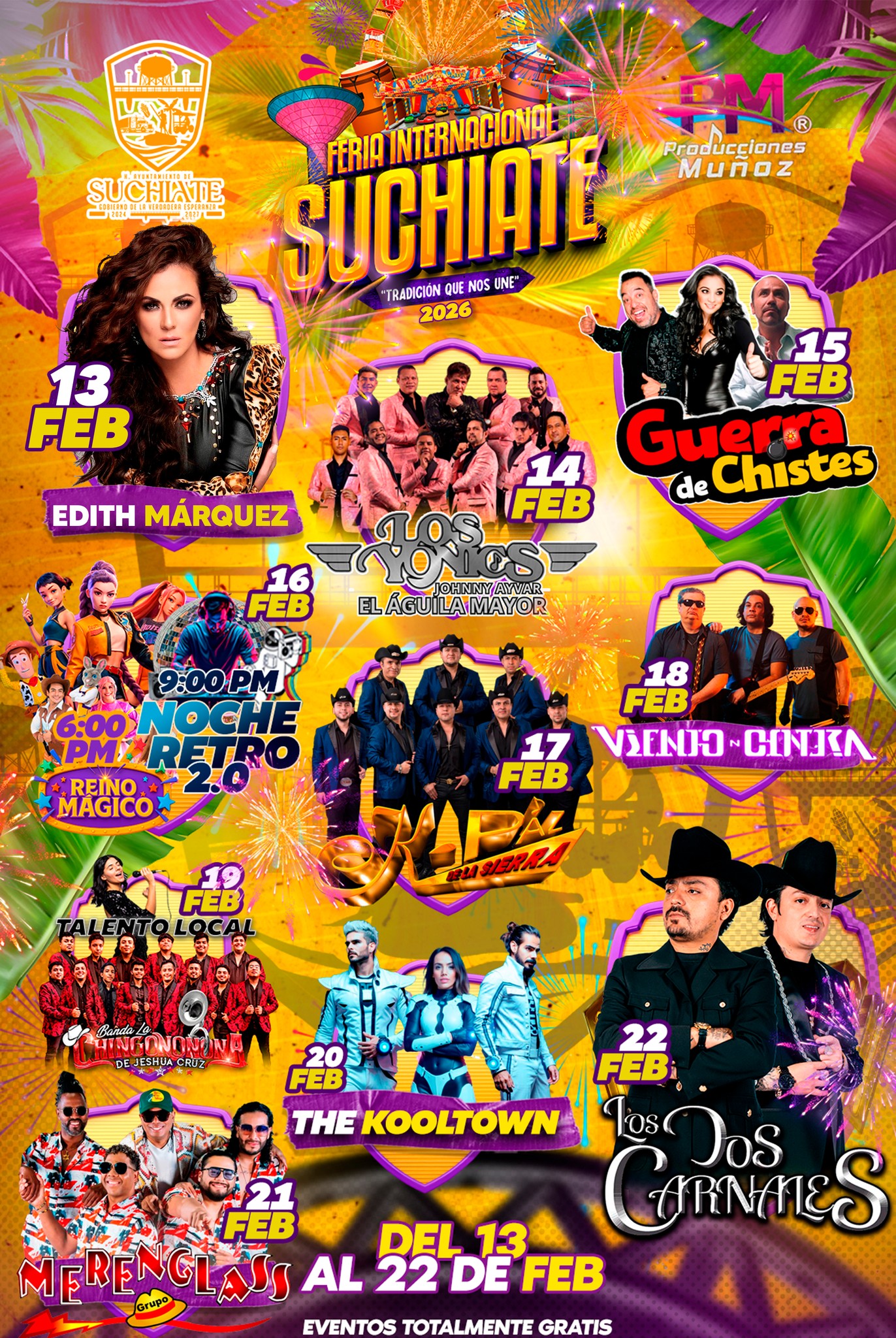 No te pierdas la sensacional Feria Suchiate 2026 que se realizará del 13 al 22 de marzo en el pueblo de Suchiate, Chiapas. Y como es costumbre se contará con excelentes programas de feria con los mejores artistas y bandas del momento.