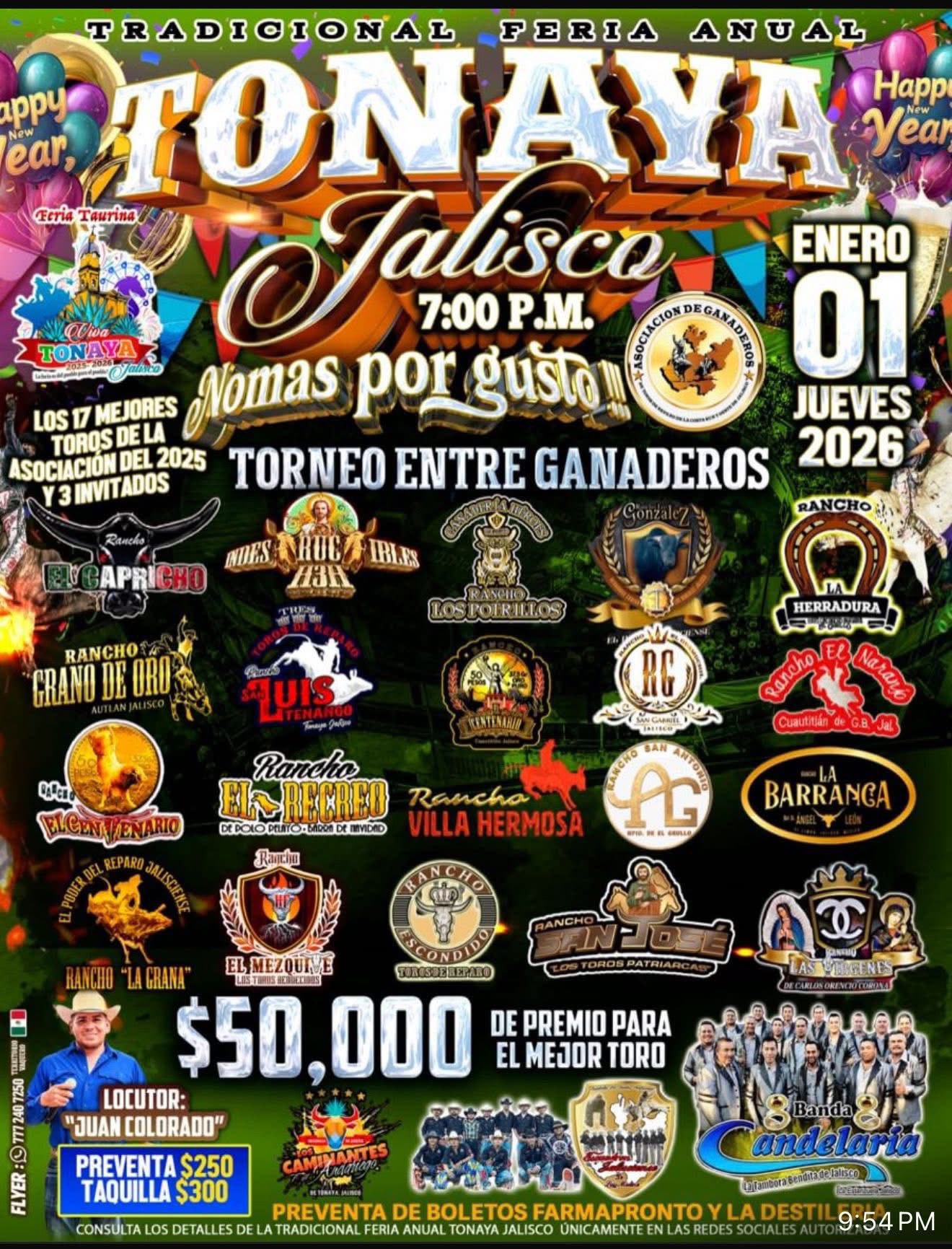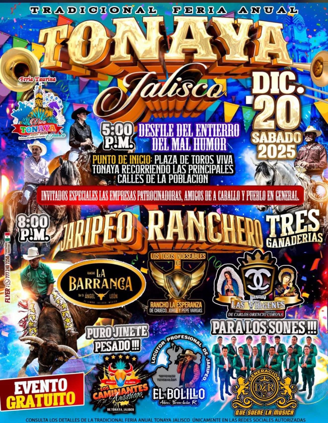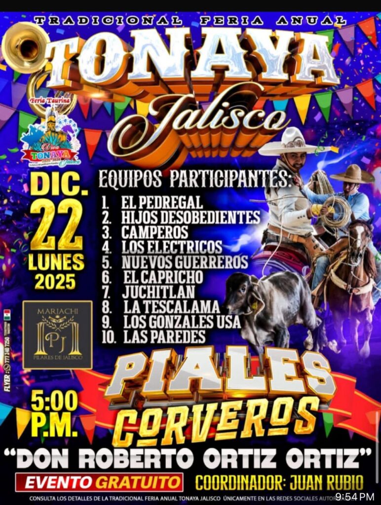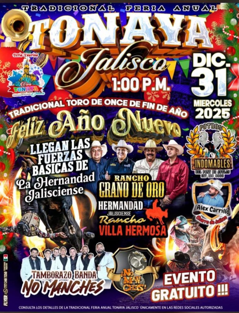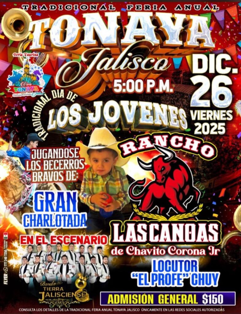 La Feria Taurina Tonaya 2025-2026 llegará una vez más a la Plaza de Toros Viva Tonaya con la mejor organización de jaripeos, competencias entre ganaderías, presentaciones musicales y espectáculos para toda la familia. Este municipio del sur de Jalisco, conocido por su producción agrícola, su tradición charra y la presencia de ranchos dedicados al ganado de lidia, concentra durante diciembre una de sus celebraciones más concurridas.